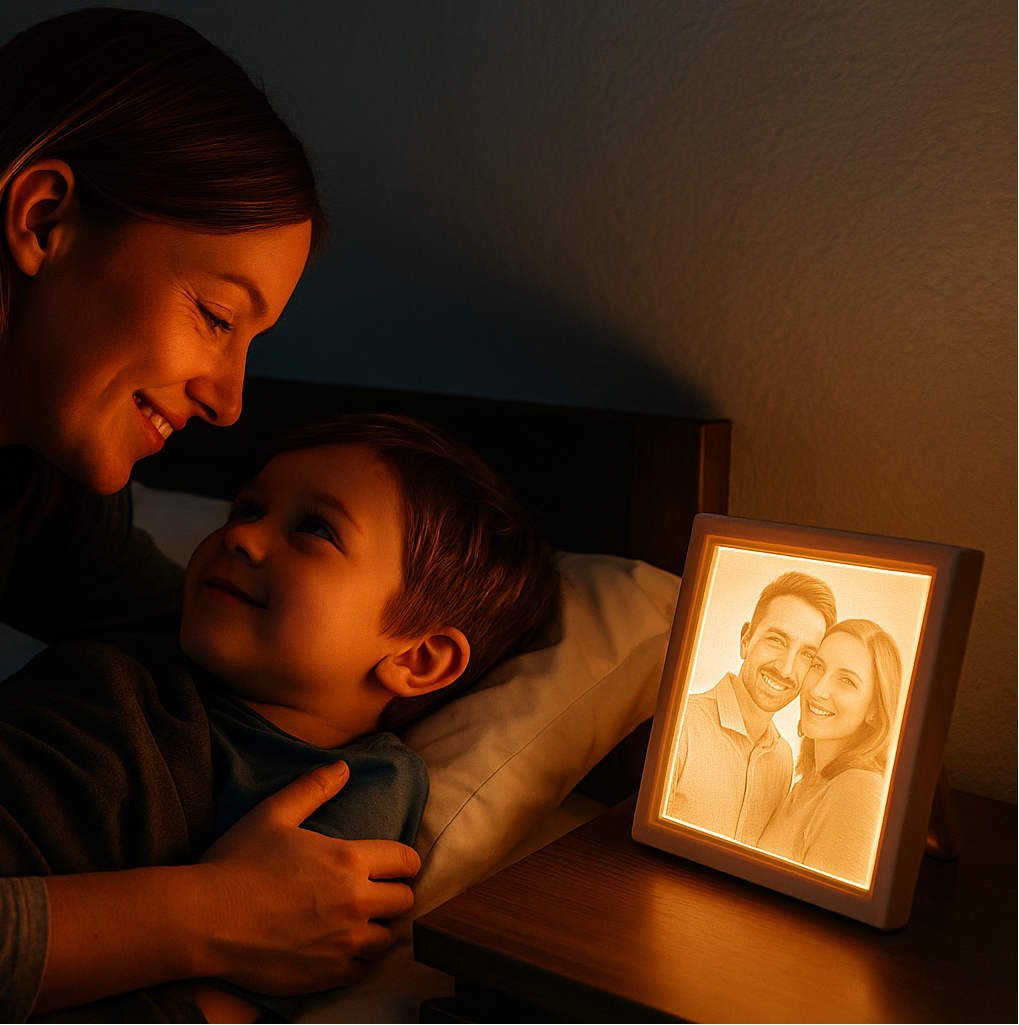 Each box is custom-made from any image you choose—color, black and white, or sepia—transforming it into a glowing lithophane that works beautifully as a comforting night light, a unique centerpiece, or a one-of-a-kind gift that’s always on display.